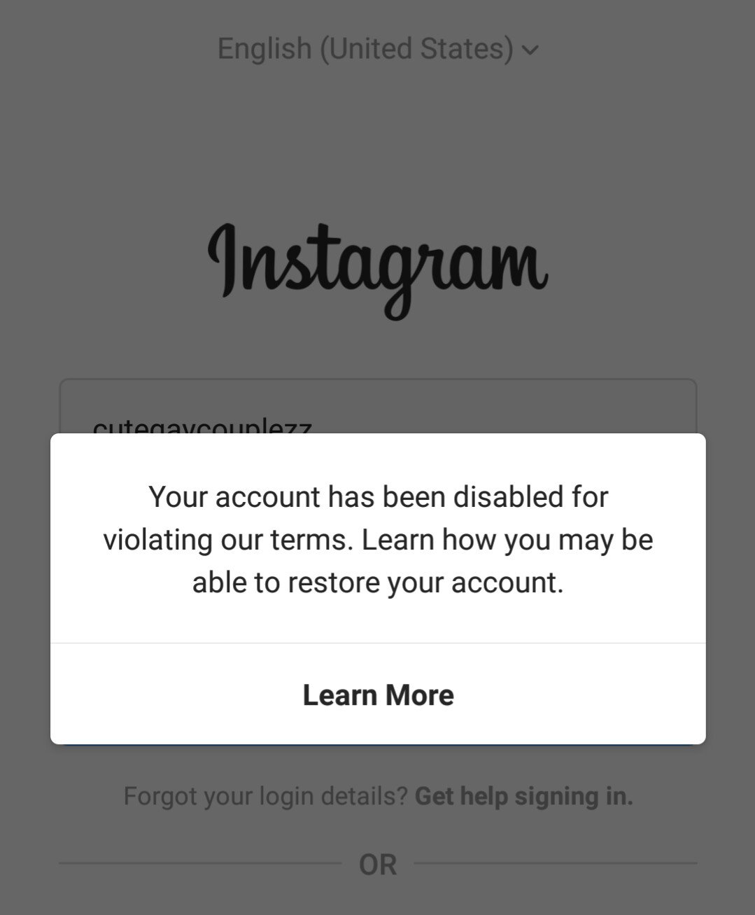 Background. I agree,instagram is a very poorly made site.all the accounts that i tried to create were blocked before the first login itself.whenever i try to sign up,they saysorry,an error happened.please try again. sometimes i would believe this message an. If your instagram account was disabled, you'll see a message when you try to log in.